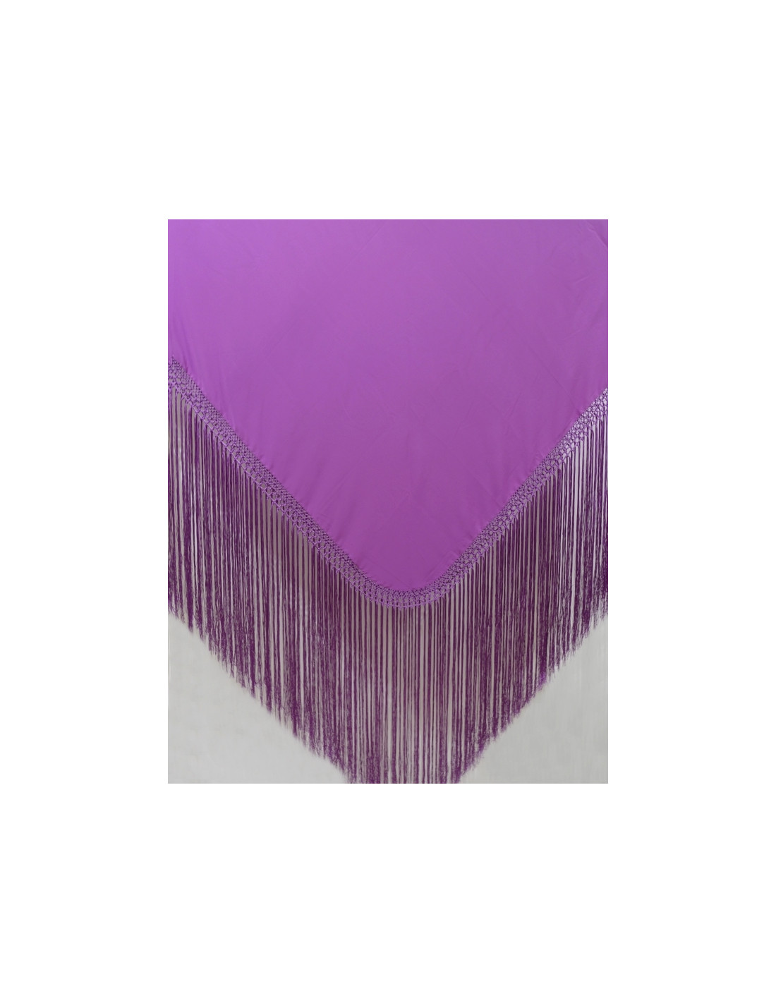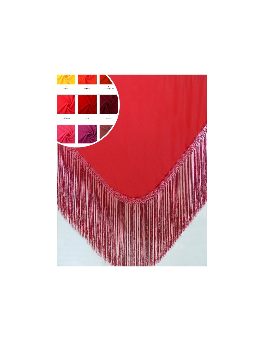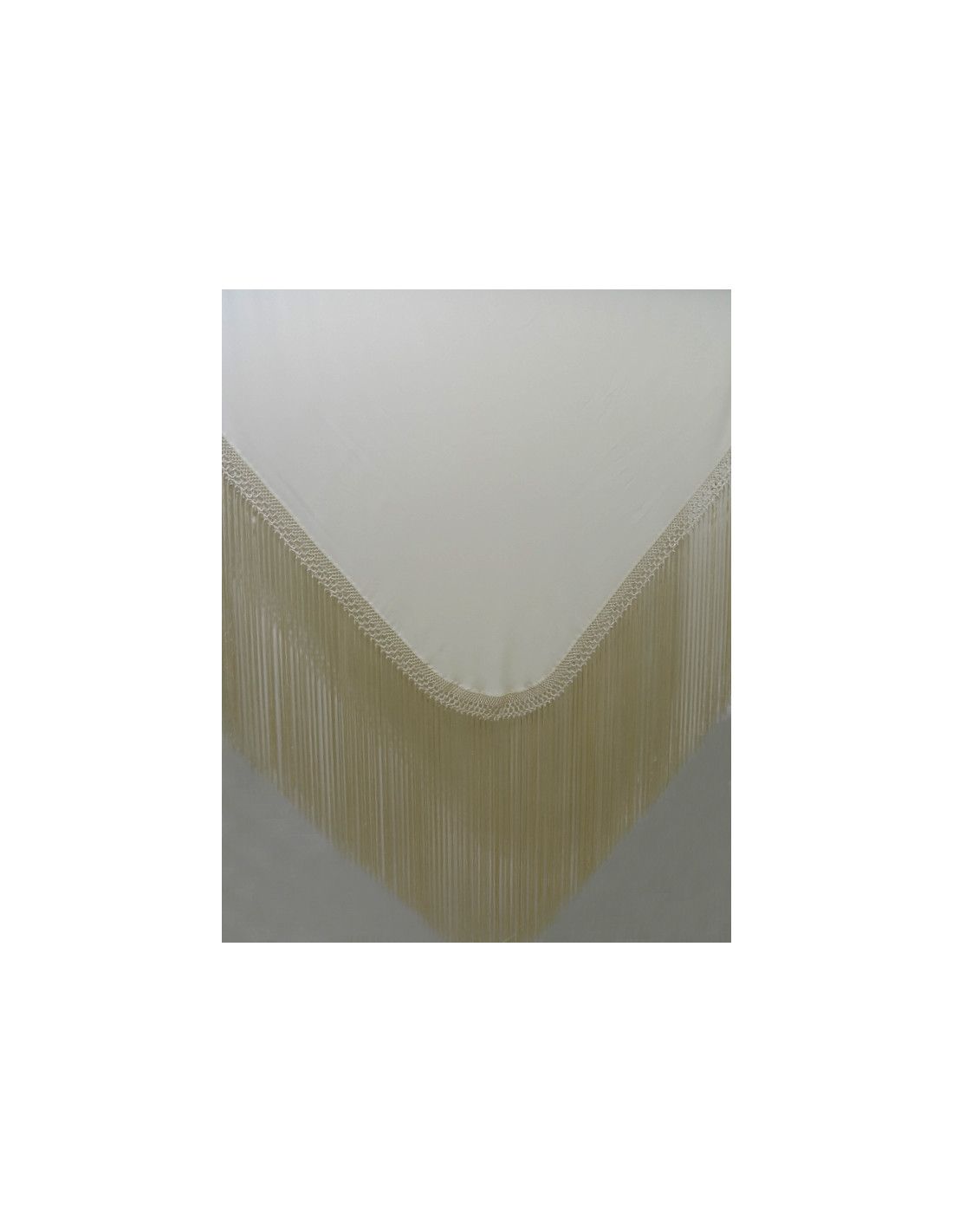 Dance shawl made in crepe with hand-made fringes. Size 140x140cm, approximate weight 700grs. Fringes approximately 55cm + fretwork 6cm.