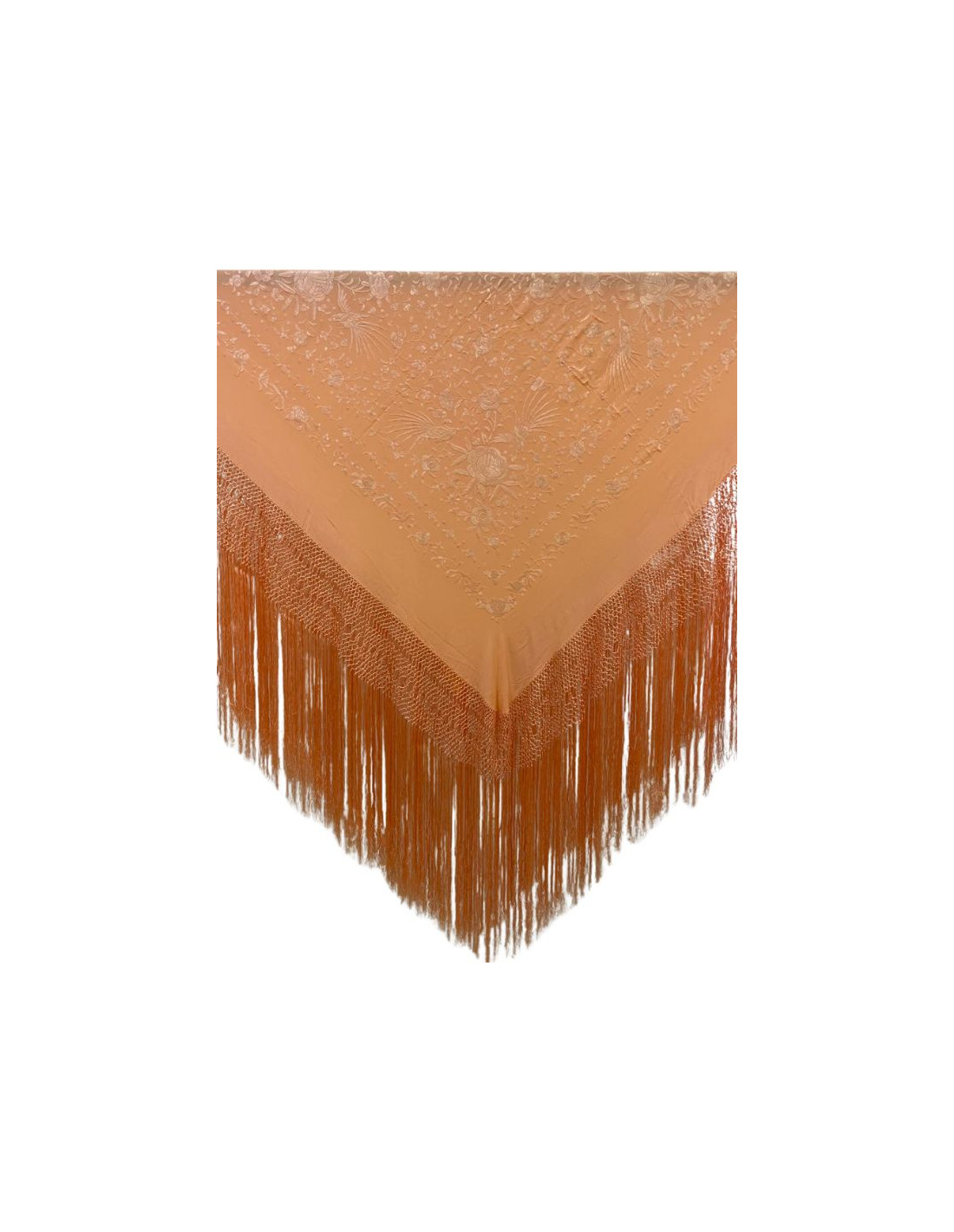 'Mantón de Manila' shawl, 100% silk, hand-made embroidery and fringes. Size 140x140cm, approximate weight 850grs.