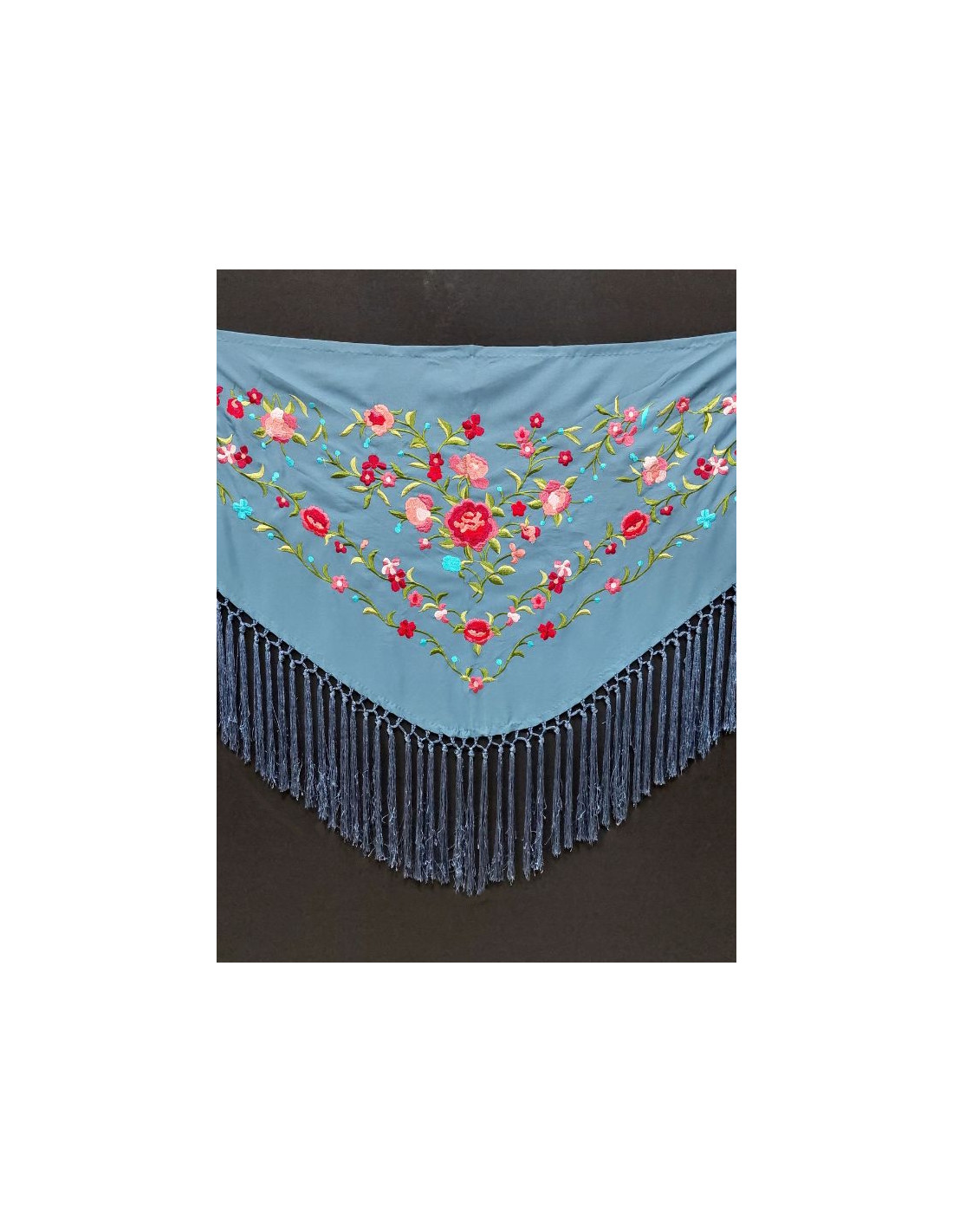 EMBROIDERED SHAWL, DUSTY BLUE COLOR